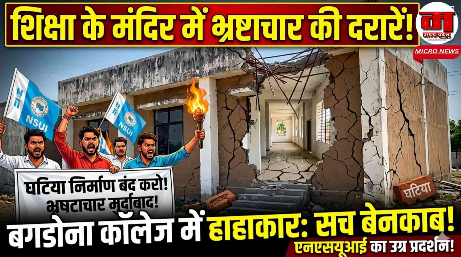 शिक्षा के मंदिर में भ्रष्टाचार की दरारें: बगडोना महाविद्यालय के घटिया निर्माण के खिलाफ एनएसयूआई का उग्र प्रदर्शन – Madhya Pradesh Voice