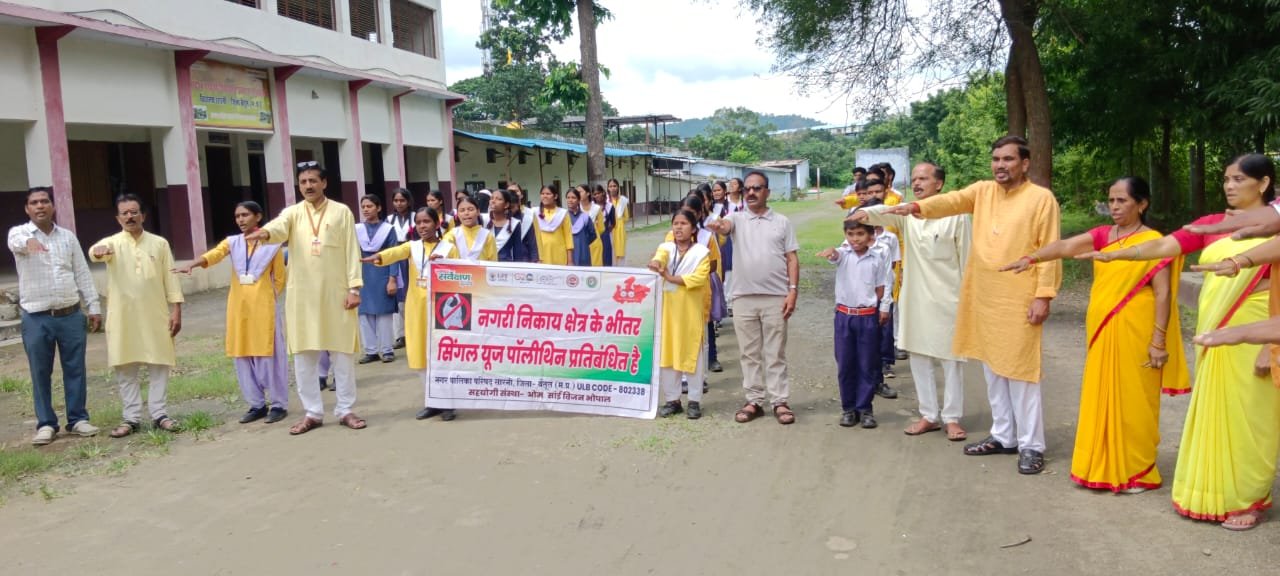 स्वच्छता ही सेवा अभियान के तहत चालानी कार्यवाही के पूर्व नगर पालिका परिषद सारनी द्वारा जन-जागरूकता अभियान चलाया गया। नगर पालिका परिषद सारनी द्वारा उक्त अभियान 17 सितंबर से 2 अक्टूबर तक आयोजित किया जाएगा। कार्यक्रम के तहत गुरुवार सुबह 11 बजे नगर के गायत्री स्कूल में कार्यक्रम का आयोजन किया गया। नगर पालिका के प्रभारी सीएमओ हितेश शाक्य, नोडल अधिकारी केके भावसार, सहायक लेखाधिकारी ब्रजेश नागर, राजेश बगाहे, राजेश वागद्रे समेत अन्य लोगों की मौजूदगी में स्कूल से रैली निकाली गई। सिंगल यूज पॉलीथीन को लेकर सभी को जागरूक किया गया।