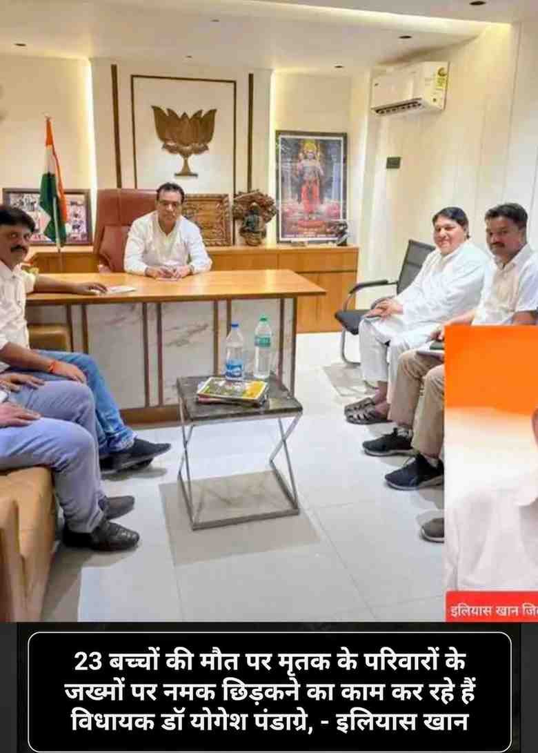 बैतूल/सारनी। सोमवार को कांग्रेस कमेटी के जिला उपाध्यक्ष मोहम्मद इलियास खान ने प्रेस नोट जारी कर कहा था कि मध्य प्रदेश के छिंदवाड़ा परासिया और बैतूल आमला क्षेत्र के बोरदेही में जहरीले कफ सिरप से 23 बच्चों की मौत पर मृतक के परिवारों के जख्मों पर नमक छिड़कने का काम कर रहे हैं विधायक डॉ योगेश पंडाग्रे जो आत्मनिर्भर भारत संकल्प अभियान एवं जीएसटी बचत उत्सव कि आड़ में दीपावली मिलन समारोह करने जा रहे है।