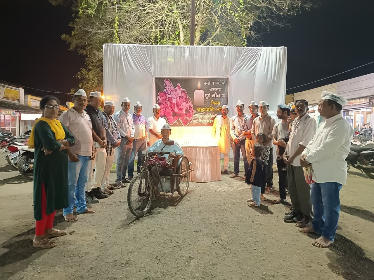 बुधवार की रात्रि, आम आदमी पार्टी के मध्य प्रदेश कोर कमेटी सदस्य एवं राष्ट्रीय परिषद सदस्य अजय सोनी की अध्यक्षता में, ब्लॉक अध्यक्ष सारनी रमेश भूमरकर की उपस्थिति में, स्थानीय व्यापारी बंधुओं और आम आदमी पार्टी के सदस्यों ने न्यू शॉपिंग सेंटर स्थित आप कार्यालय के समक्ष मौन धारण कर दिवंगत बच्चों को श्रद्धांजलि अर्पित की। नम आँखों से कैंडल प्रज्ज्वलित कर, सभी ने मासूमों की आत्मा की शांति के लिए ईश्वर से प्रार्थना की। पार्टी ने यह भी कामना की कि ईश्वर शोक संतप्त परिवारों को इस असहनीय दुख को सहने की शक्ति प्रदान करे।